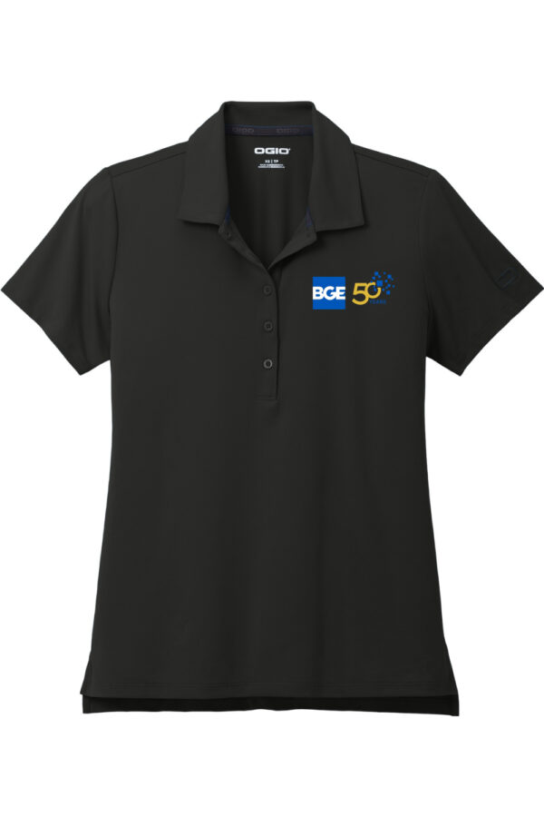 Make a statement with the Women’s OGIO Regain Polo, featuring an embroidery 50th Anniversary logo on the left chest. This environmentally-conscious polo is made with recycled materials and certified carbon-neutral by C-FREE®. Stay comfortable and protected with pill resistance, moisture-wicking, and UV protection. Look and feel good while making a positive impact with Regain!