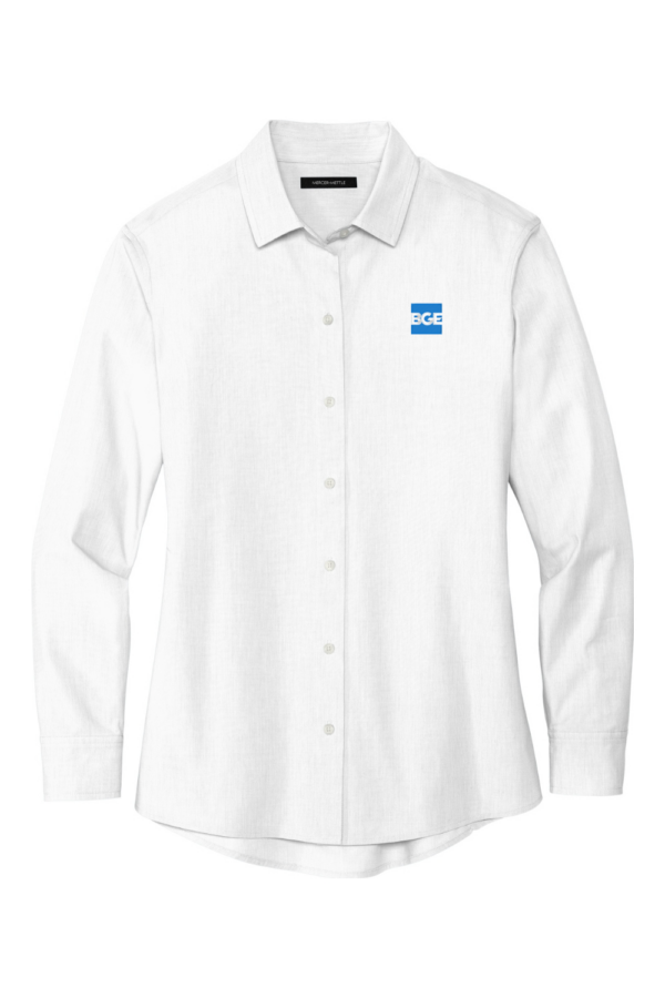 $46.00With smart tailoring and a modern fit, the Women’s Long Sleeve Stretch Woven Shirt moves effortlessly with you, day or night. Featuring rimmed buttons and a back yoke seam, its solid fabric boasts a subtle, heathered look thanks to its end-on-end weave. It features an EMB logo on the left chest. Elevate your wardrobe with a shirt that combines style, comfort, and versatility in one sleek package.